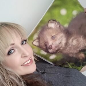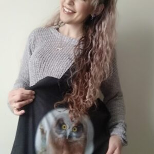 Kaunis kruus erinevates värvitoonides. Kiri ühel pool: “Sellest tassist joob metsloomade haldjas!” Kiri teisel pool: “Tänu Sinule sain uue võimaluse”